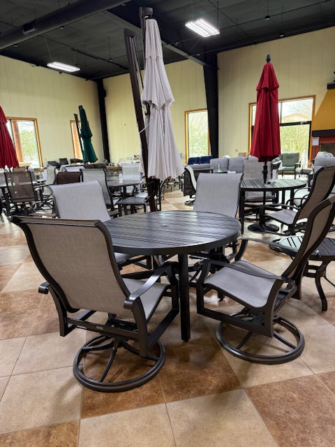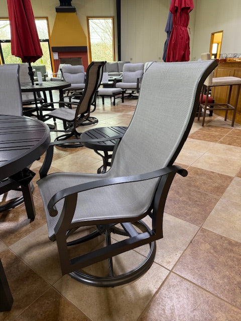 High Back Swivel Rockers in Pewter Finish and Augustine Alloy Sling Fabric